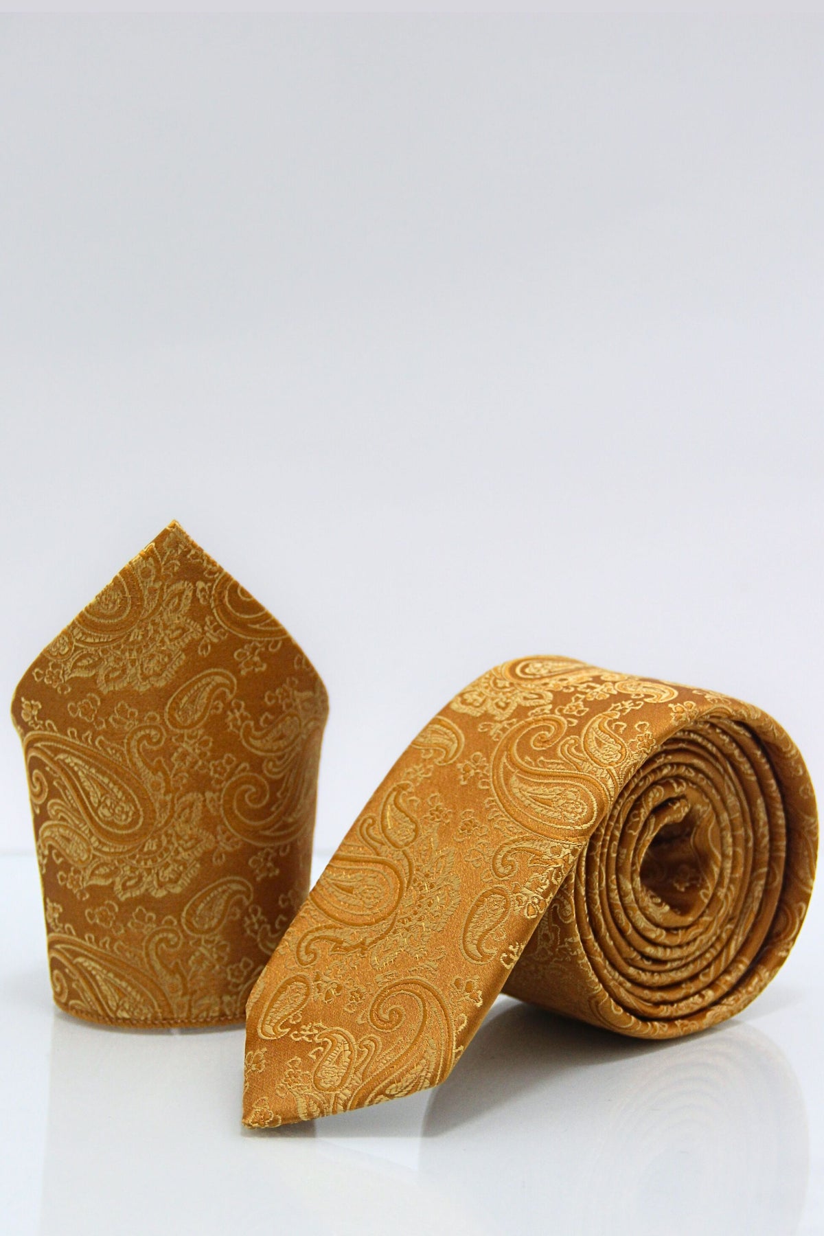 Make a bold statement with this opulent gold set byTom Silk. Radiating warmth and luxury, the intricate paisley pattern creates a striking contrast that is perfect for celebratory occasions. This set is particularly effective when paired with a navy blue suit, offering a classic yet eye-catching colour combination that ensures you stand out from the crowd.